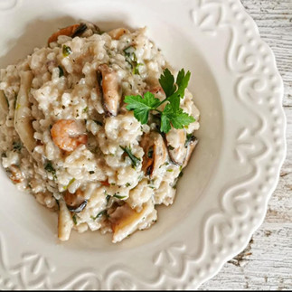 Beli rižoto z morskimi sadeži. Ko pogrešam morje so tu morske jedi, da me spravijo v dobro voljo. Po novem smo nori na zmrznjene morske sadeže iz @hoferslo . Noter so mal večji sadeži, tudi lignji.